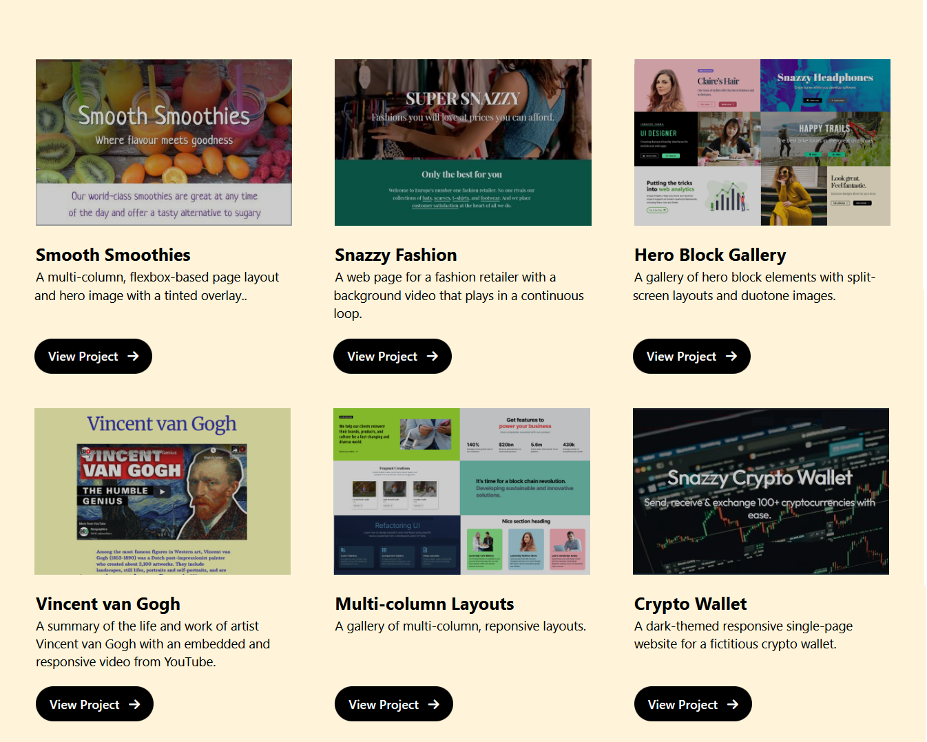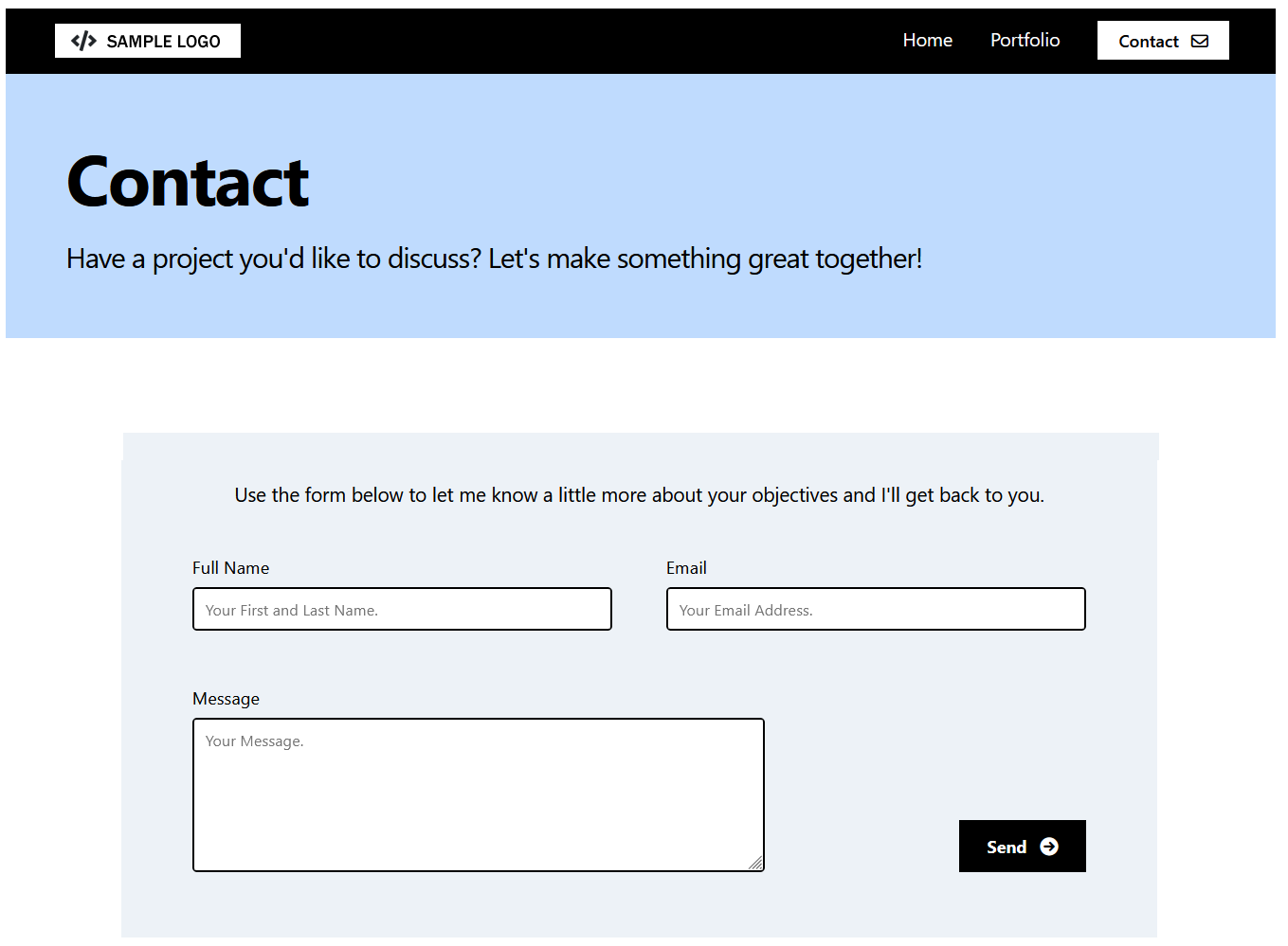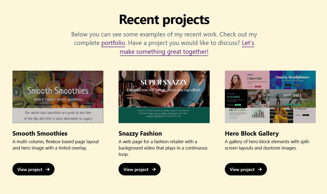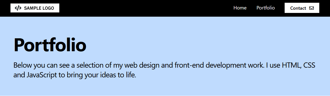 When finished, save your index.html and custom.css files. Your Portfolio page should look something like the sample below.