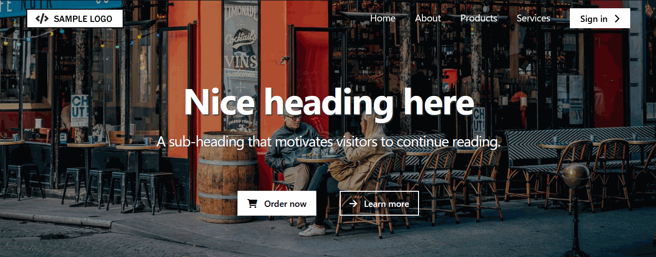 Two main layout options are popular Home page choices for front-end develpers and web designers. One is text in front of a full-width background image. You can create this layout type with the Hero Block 3 option in Lunevedy. See an example below.