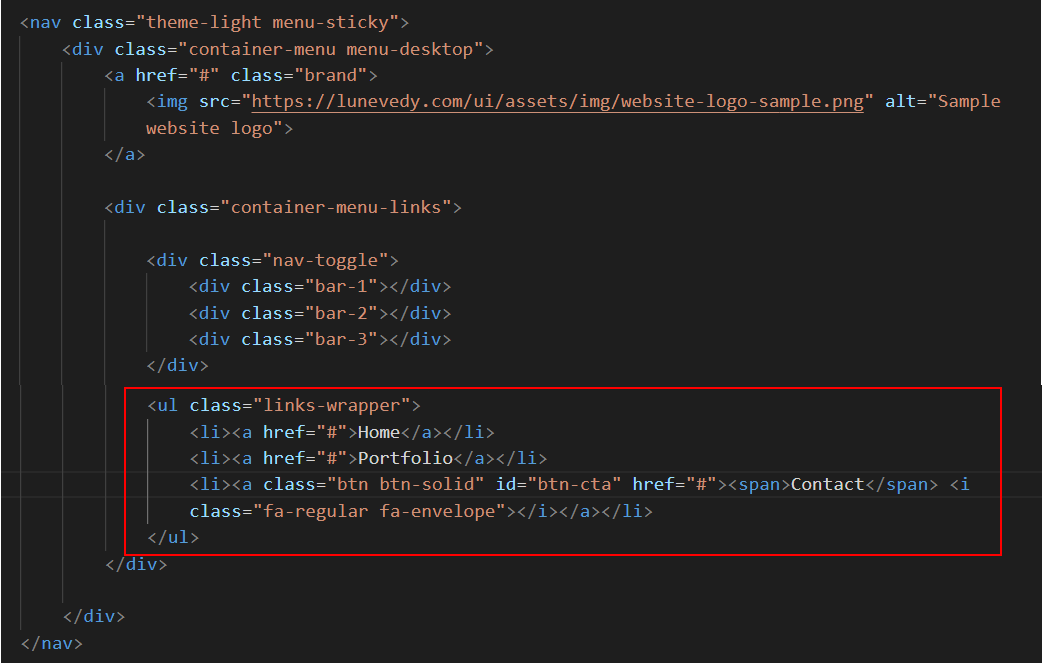 - In VS Code, from your Portfolio index.html page, select and copy the <nav> block.