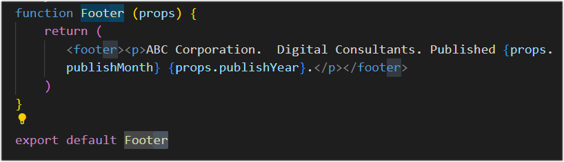 - Also from the /src folder, open the Footer.js component file.